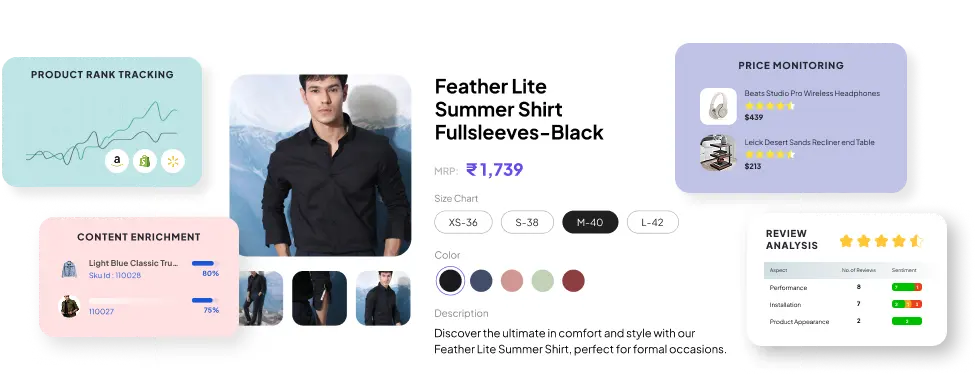 Track competitor pricing, Monitor Rankings, Manage Stock, analyze reviews, and Generate A+ Content, All in once place.